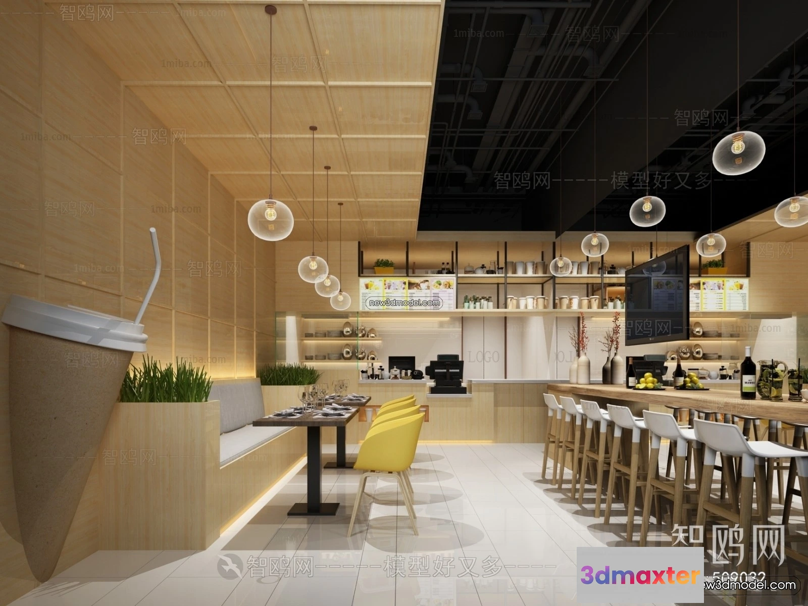 Restaurant and Fastfood 3D Scene – 3D Blocks – 048 – Restaurant 3D Model – VRAY