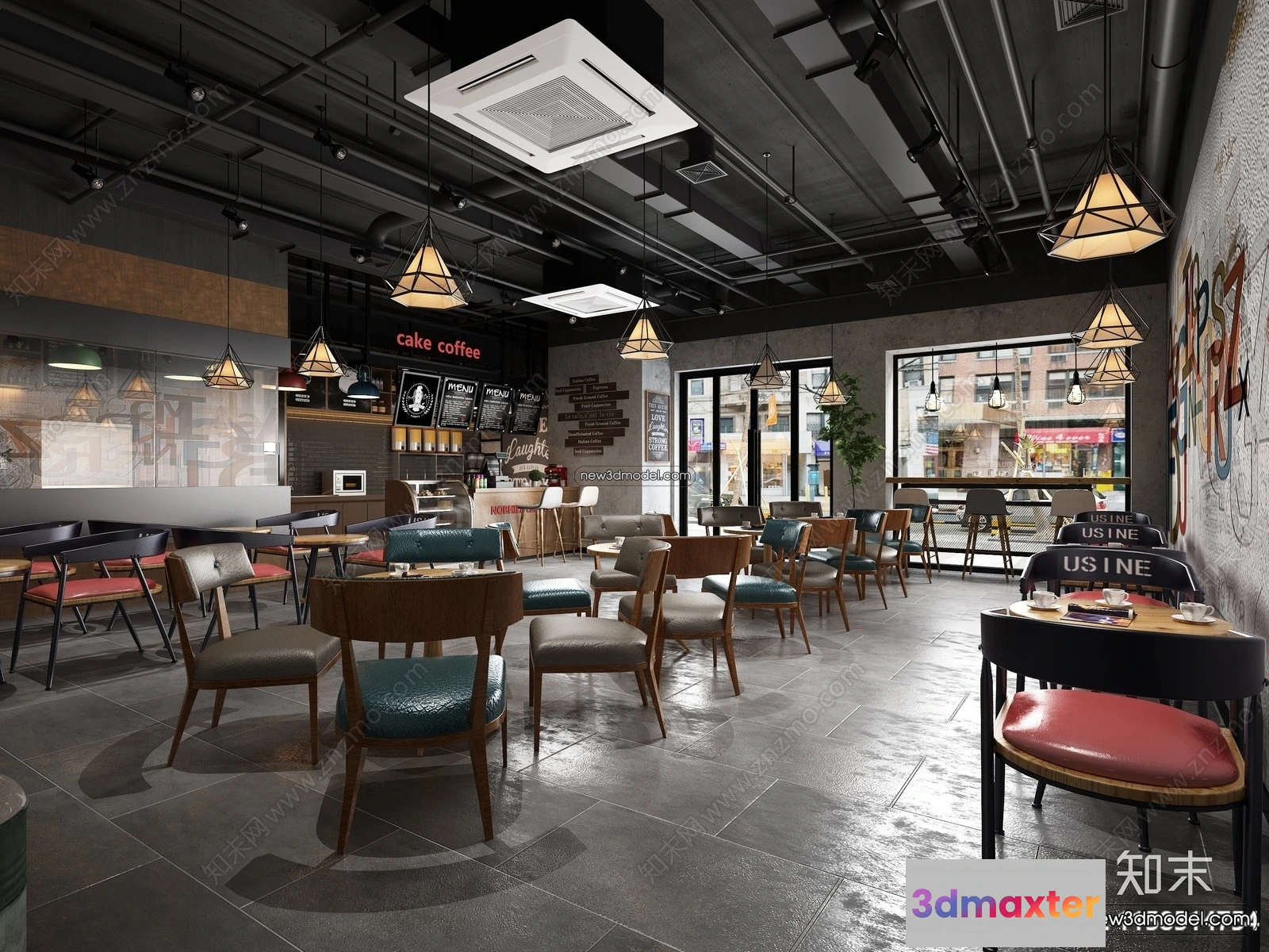 Restaurant and Fastfood 3D Scene – 3D Blocks – 161 – Restaurant 3D Model – VRAY