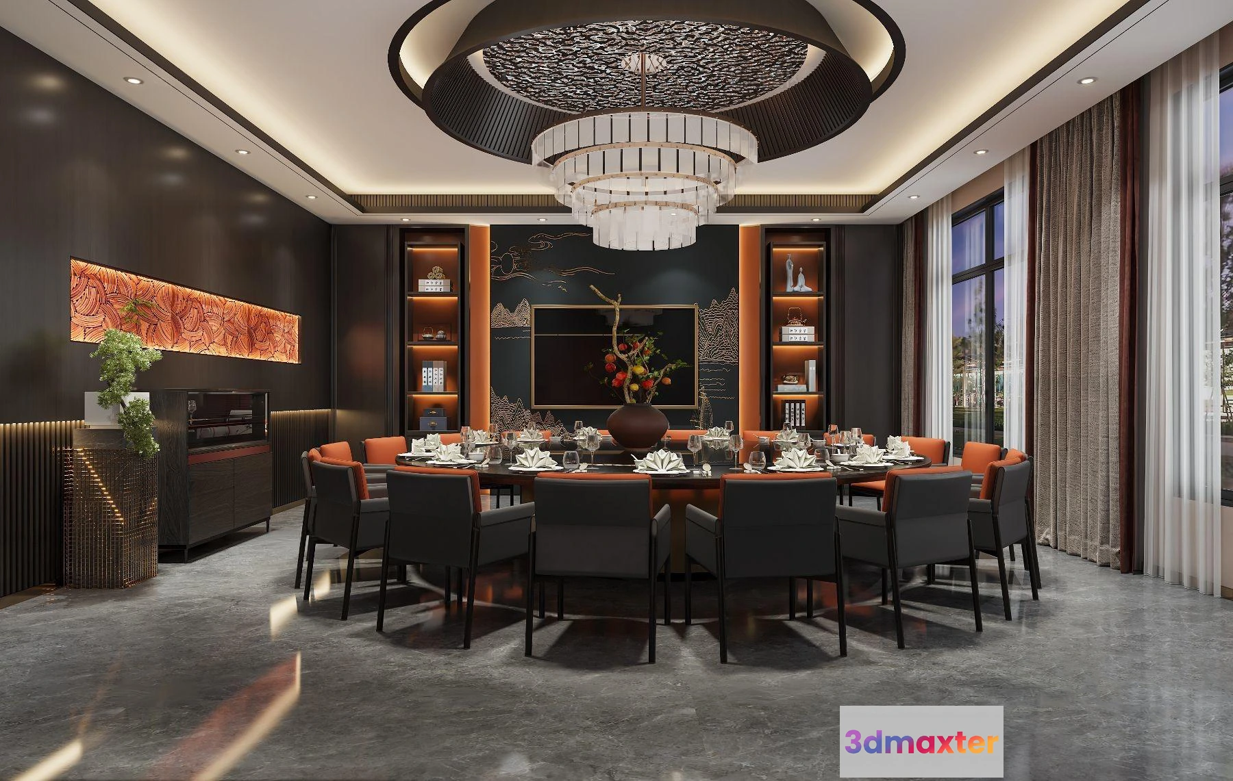 3D Models / 3D Scenes / Interior / Commercial Spaces / RESTAURANT & COFFEE SHOP – 3D Model For Interior Design – 10677 3D Max