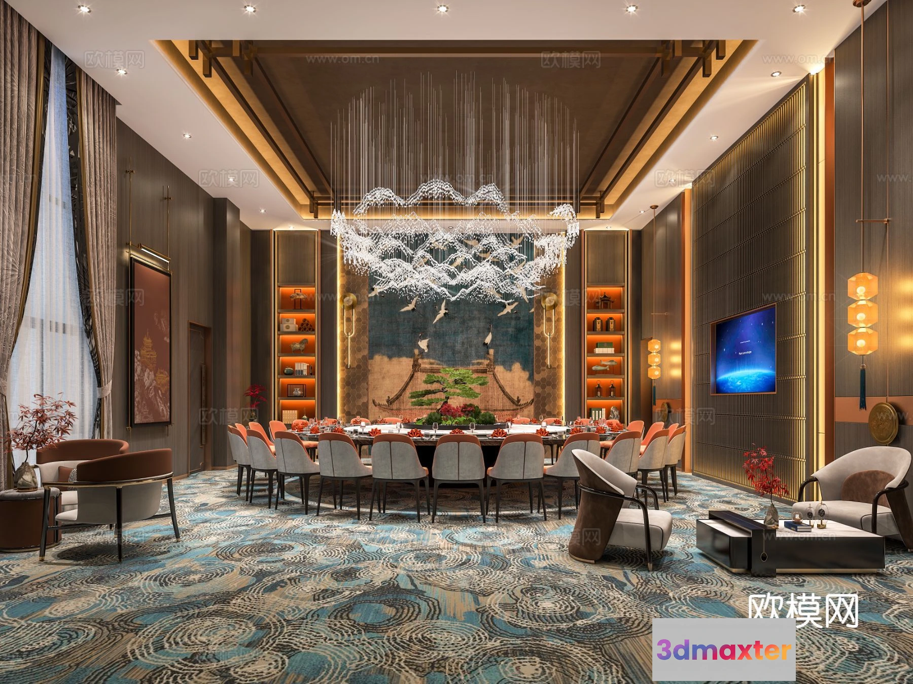 3D Models / 3D Scenes / Interior / Commercial Spaces / RESTAURANT & COFFEE SHOP – 3D Model For Interior Design – 10713 3D Max
