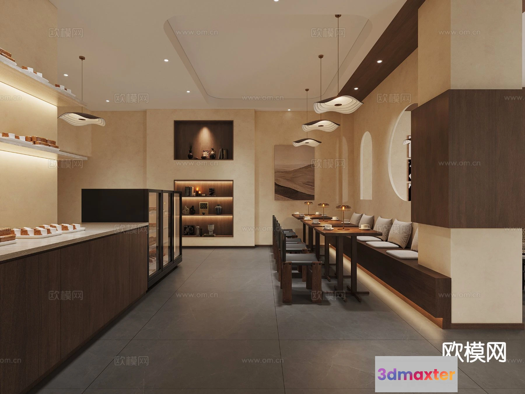 3D Models / 3D Scenes / Interior / Commercial Spaces / RESTAURANT & COFFEE SHOP – 3D Model For Interior Design – 1130 3D Max