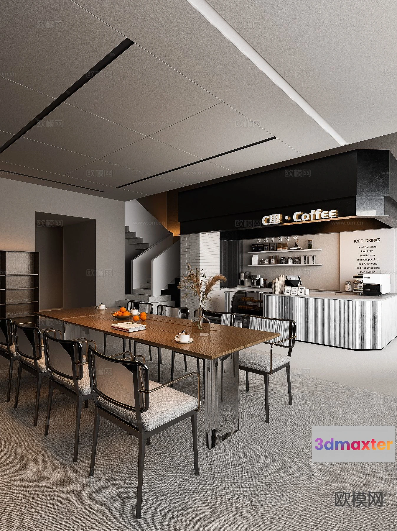 3D Models / 3D Scenes / Interior / Commercial Spaces / RESTAURANT & COFFEE SHOP – 3D Model For Interior Design – 1133 3D Max
