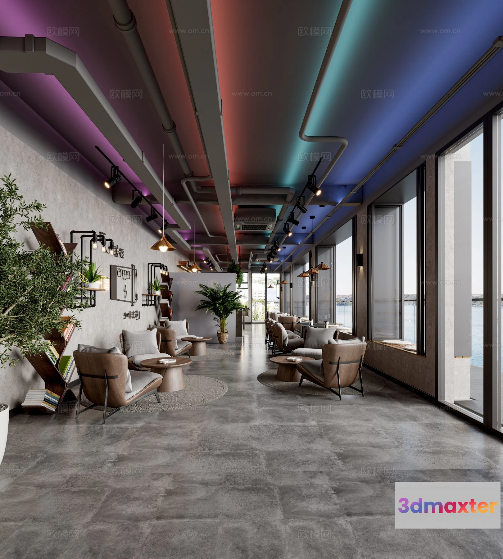 3D Models / 3D Scenes / Interior / Commercial Spaces / RESTAURANT & COFFEE SHOP – 3D Model For Interior Design – 1161 3D Max