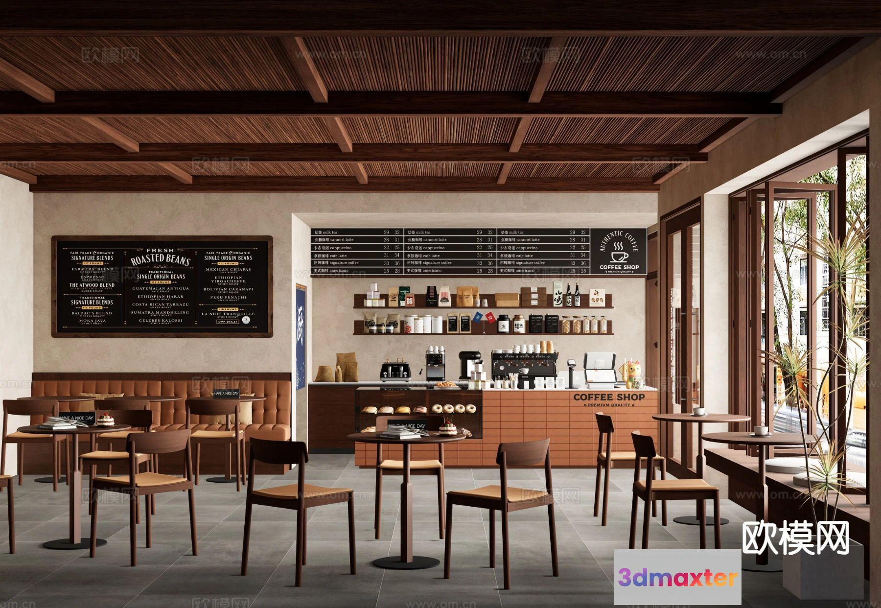 3D Models / 3D Scenes / Interior / Commercial Spaces / RESTAURANT & COFFEE SHOP – 3D Model For Interior Design – 1163 3D Max