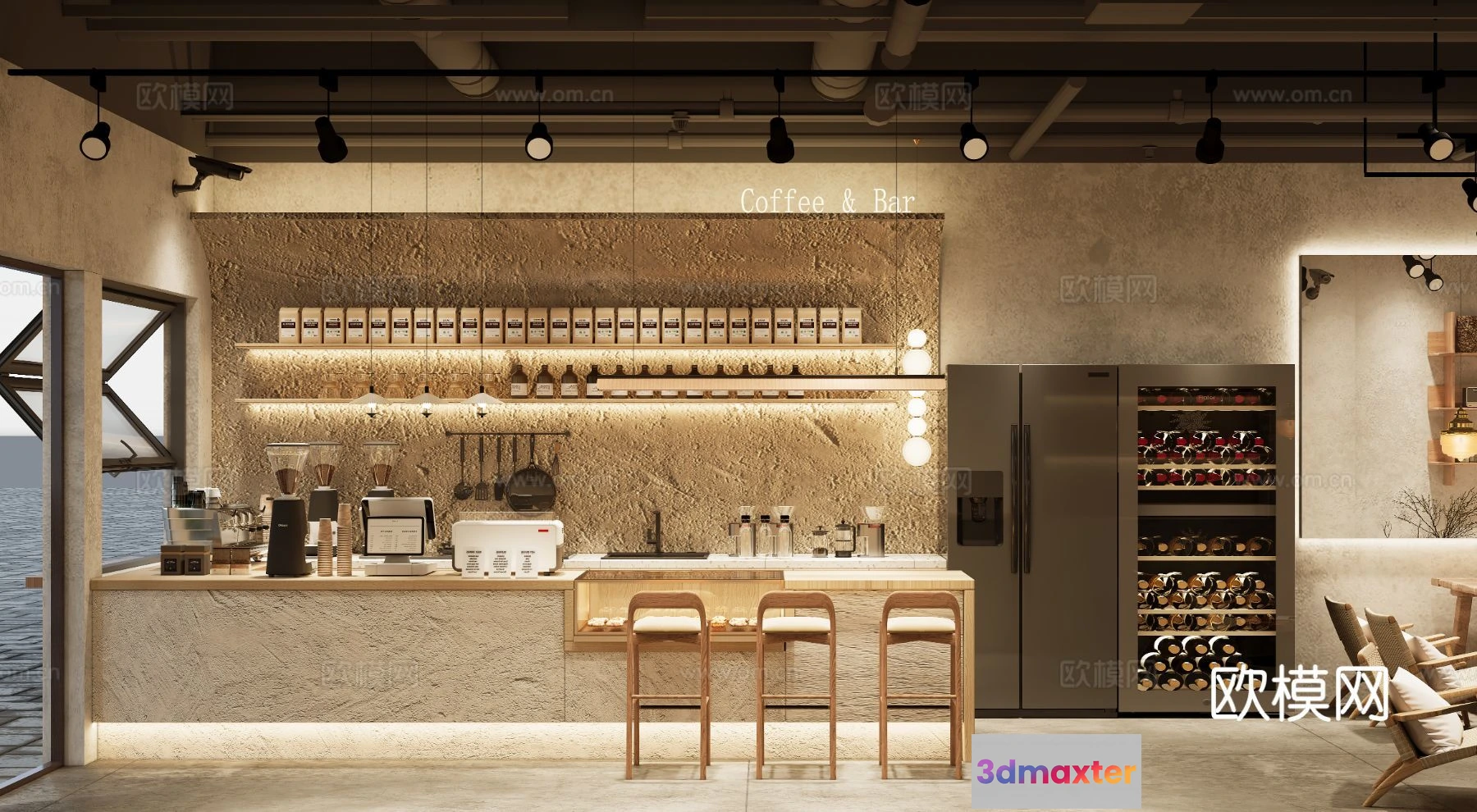 3D Models / 3D Scenes / Interior / Commercial Spaces / RESTAURANT & COFFEE SHOP – 3D Model For Interior Design – 1181 3D Max