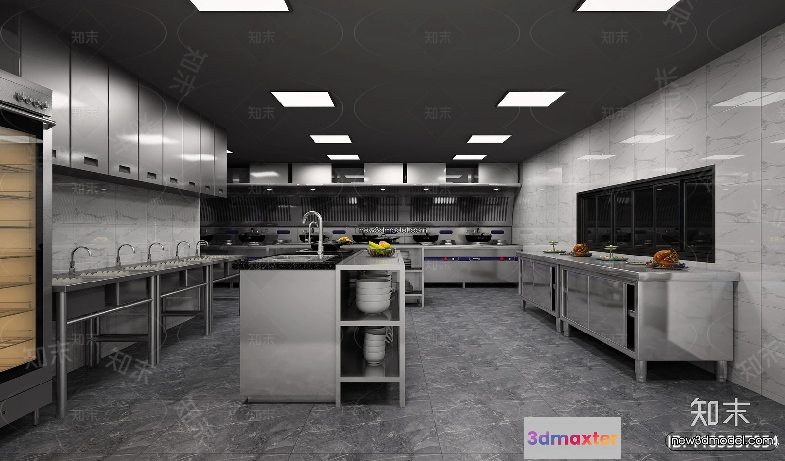 3D Models / 3D Scenes / Interior / Commercial Spaces / Restaurant Kitchen 3D Models – 3D Scene – 006 3D Max