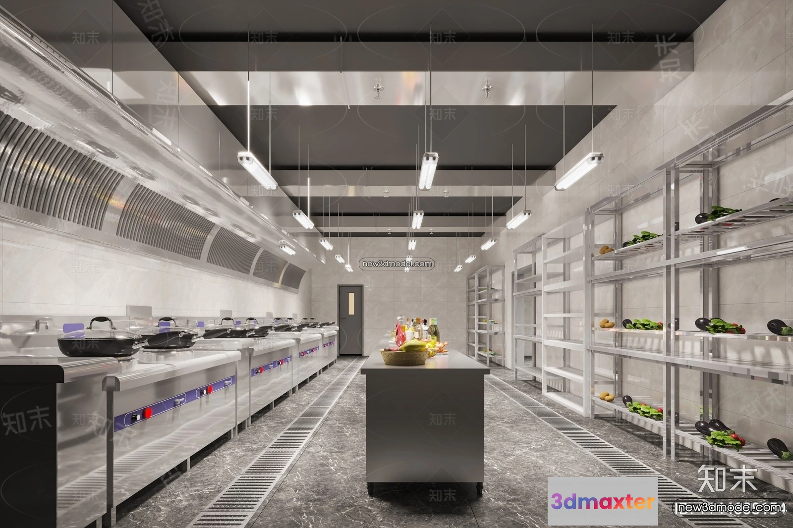 3D Models / 3D Scenes / Interior / Commercial Spaces / Restaurant Kitchen 3D Models – 3D Scene – 027 3D Max