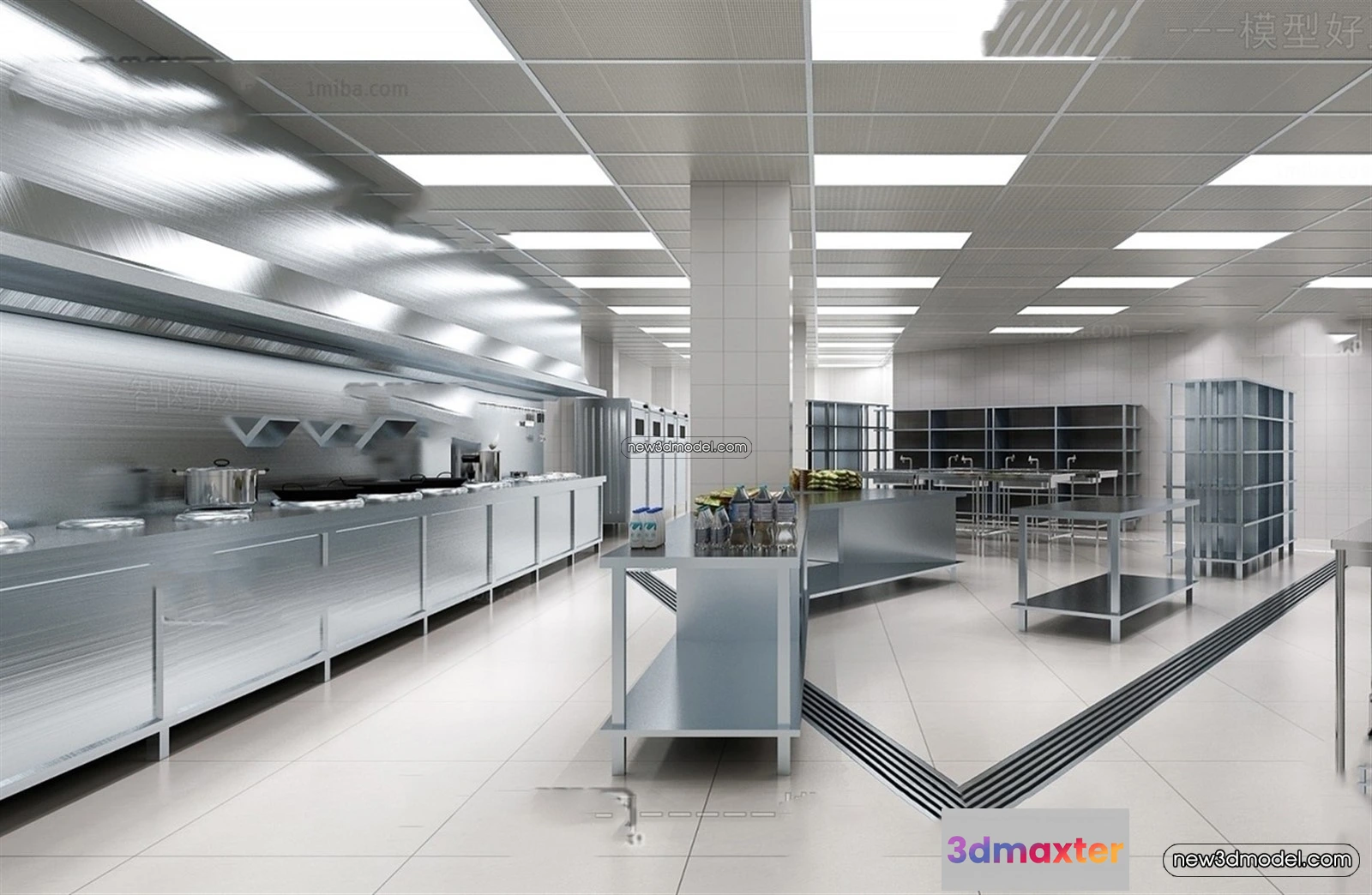 3D Models / 3D Scenes / Interior / Commercial Spaces / Restaurant Kitchen 3D Models – 3D Scene – 048 3D Max