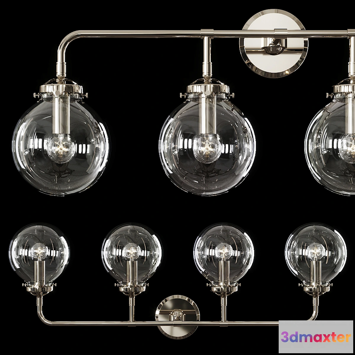 3D Models / Lighting / Wall light / Restoration Hardware BISTRO GLOBE CLEAR GLASS BATH SCONCE 4-LIGHT Nickel 3D Max