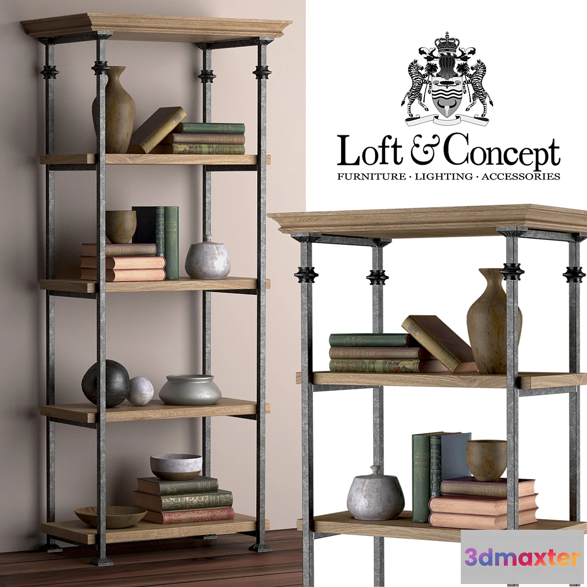 This model: RETRO OAK RACK tags: Loft concept loft-concept set of iron rack shelf book cup bowl jug loft art design vintage furniture industrial real country style furniture: http://loft-concept.ru/catalog/stellazhi/stellazh-retro- oak-rack / article: 15.016.WD.BR.T1B dimensions: 86 * 54 * 197 Made in 3d max 2011 Visualization in V-Ray 2.00.02 Polygons: 22200 Vertices: 22968 All a preview there are in the file. The model is located in the scene at the origin of all objects and groups have friendly names Al