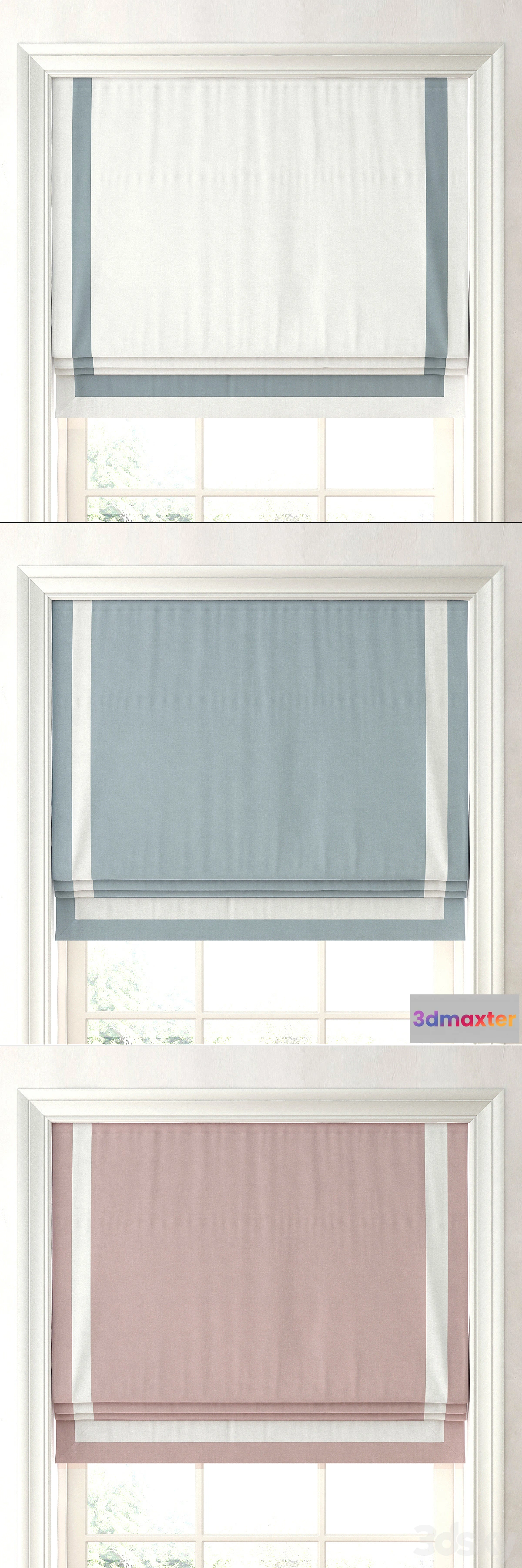 Roman blinds APPLIQUED FRAME COTTON CANVAS ROMAN SHADE from Restoration Hardware. Turbosmooth (not folded stack). Scan Unwrap UVW configured. The archive contains a file with the materials. Textures and materials have an individual name in English. My Other models http://3dsky.org/users/scion/models quick render!