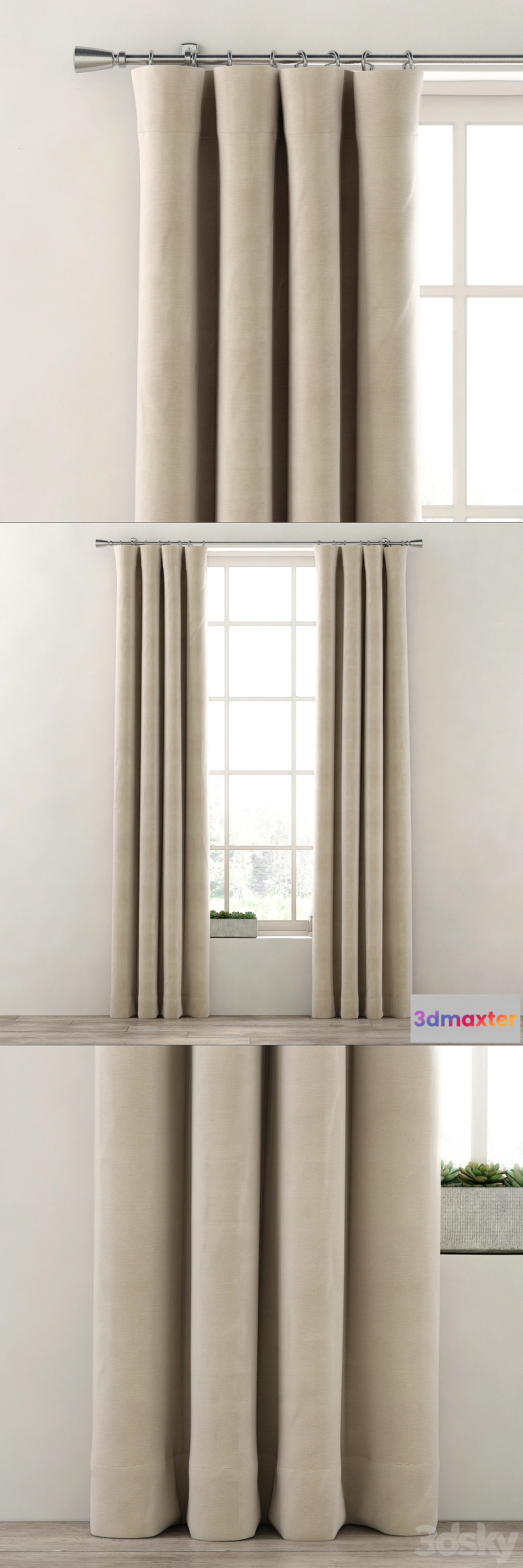 Direct curtains COTTON CANVAS DRAPERY PANEL and cornice BURNISHED METAL DARK PEWTER from Restoration Hardware. Turbosmooth (not folded stack). Scan Unwrap UVW configured. The archive contains a file with the materials. Textures and materials have an individual name in English. My Other models http://3dsky.org/users/scion/models quick render!
