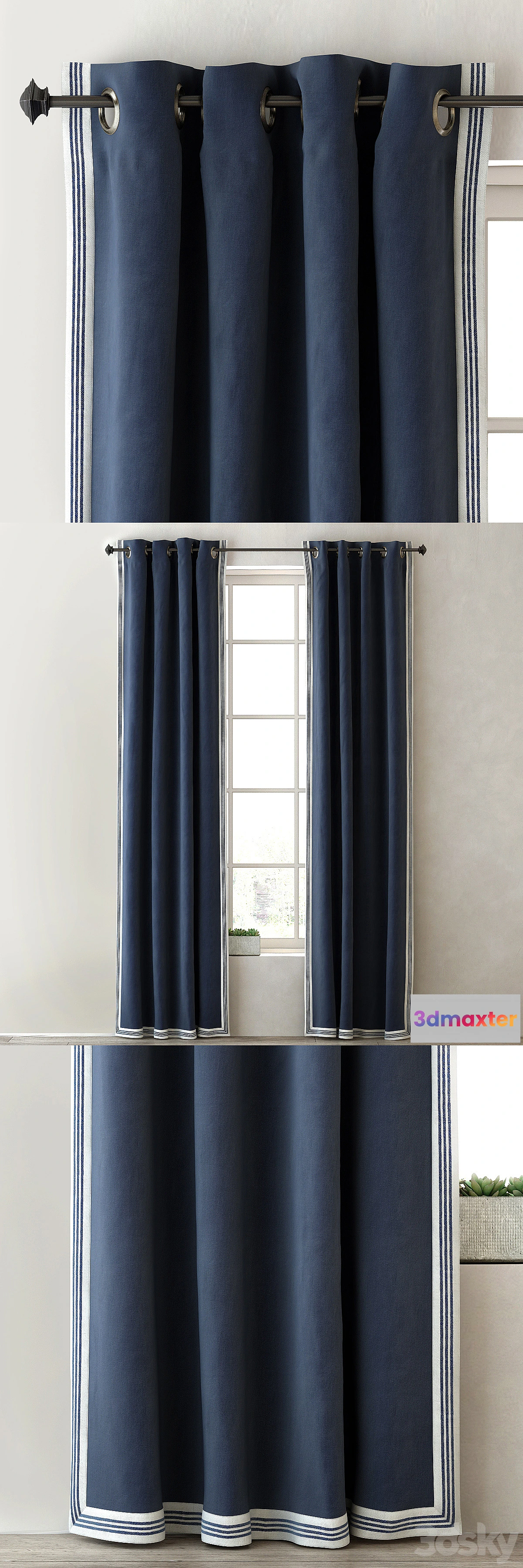Direct curtains in the room boy in three colors TICKING STRIPE BORDER DRAPERY PANEL and cornice CLASSIC OIL-RUBBED BRONZE from Restoration Hardware. Turbosmooth (not folded stack). Scan Unwrap UVW configured. The archive contains a file with the materials. Textures and materials have an individual name in English. My Other models http://3dsky.org/users/scion/models quick render!