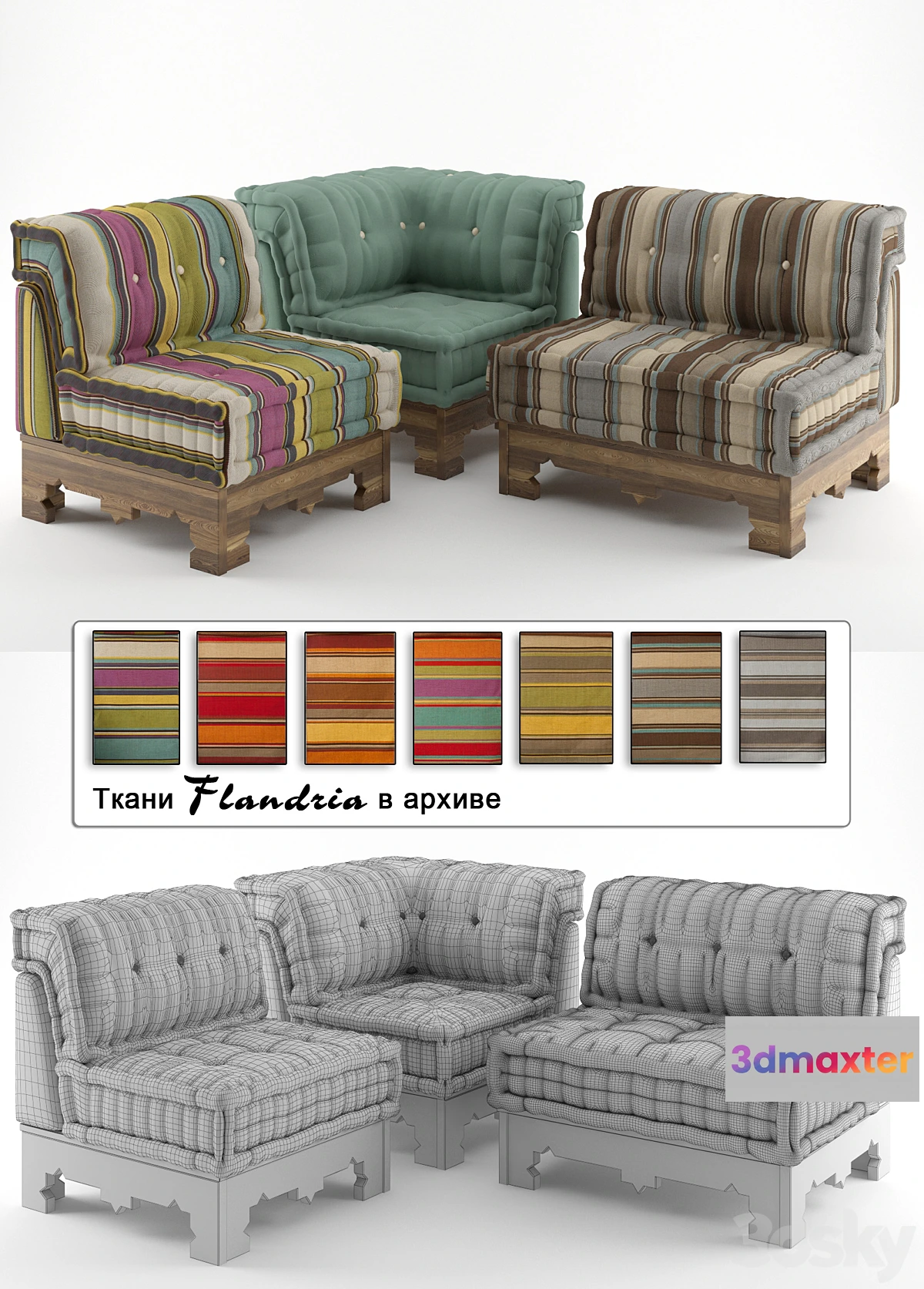 Roche Bobois factory soft armchair-angular composition. Dimensions 850x850x850h. The archive is a set of preconfigured materials with tissues the company Flandria.