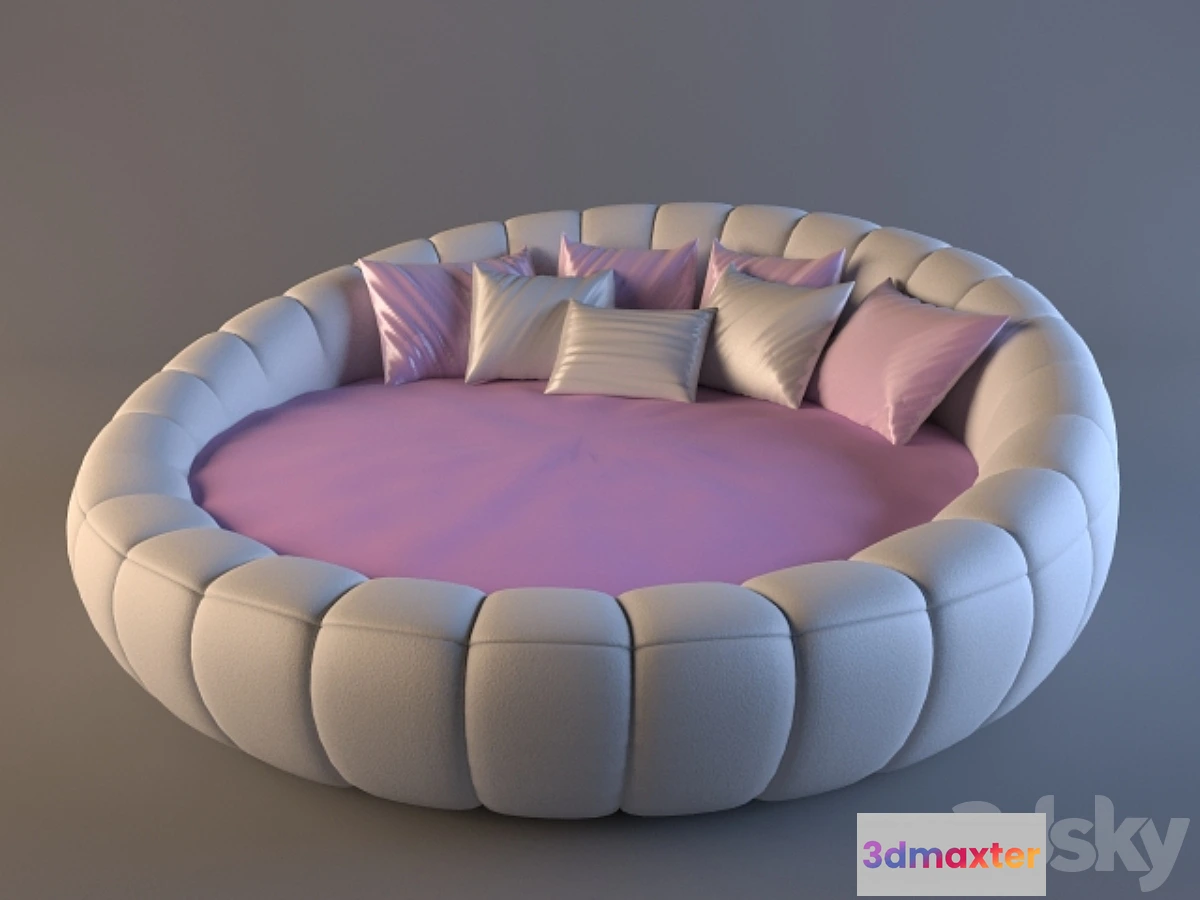 Round bed F3682. In the stage version of the skin in the same bed can postavl?ts? with fabric material. VRay 1.5 sp4a materials textures are used. The bed was made of pictures and dimensions for the child. Diameter of bed-1620mm. In the adult version-2000mm.