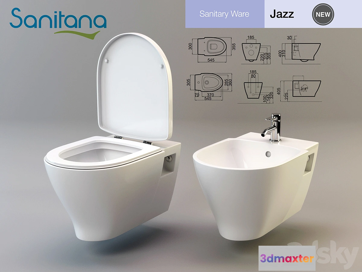 Wall hung toilet (Ref: JZSS3) and bidet (REF.: JZBD3) JAZZ SANITANA.