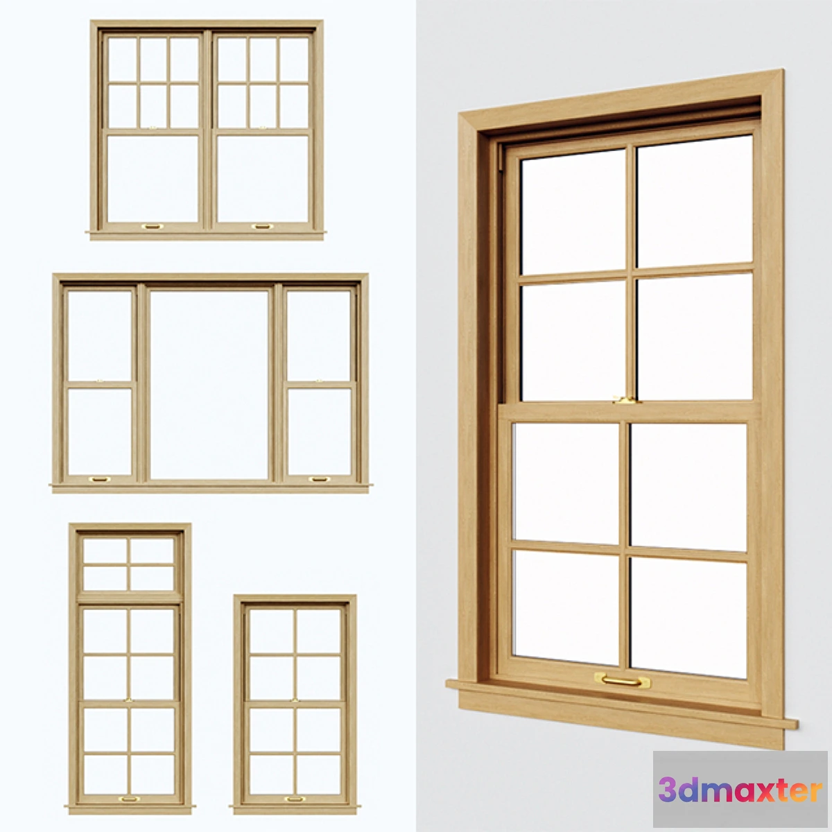 US (English) lifting and sliding windows (double hung) under the glazing. The file 5 versions of windows: – Single window – Single window with a transom from above – single window of white plastic for use in a bearing wall (without casing) – see preview 2 – double window – dual screen + a blind window in the middle.. Window size is easily editable stack UVW map is not minimized. The lower and upper sash jamb sill box made separate entities for ease of opening the valves and configuration options. If priattachit all of the window to editable poly one of the doors you can change the size of all windows at once (without loss of mapping the wooden parts and double-glazed window) There is also a version of Vray.