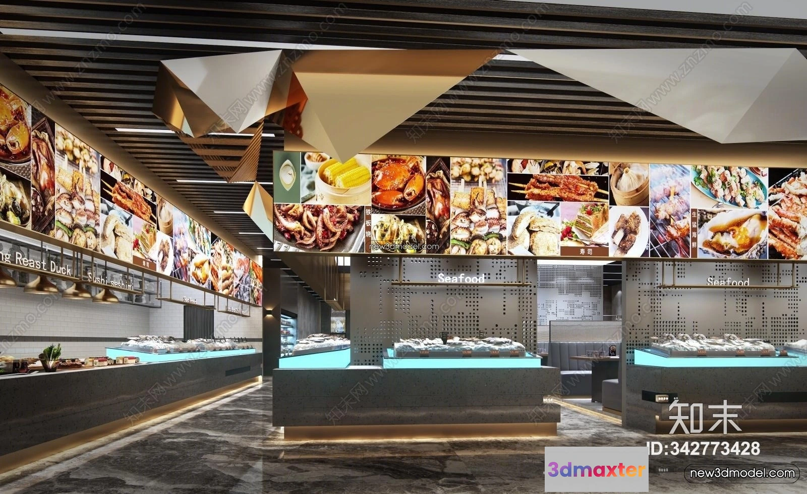 3D Models / 3D Scenes / Interior / Commercial Spaces / Seafood Restaurant 3D Scene – 3D Blocks – 006 3D Max
