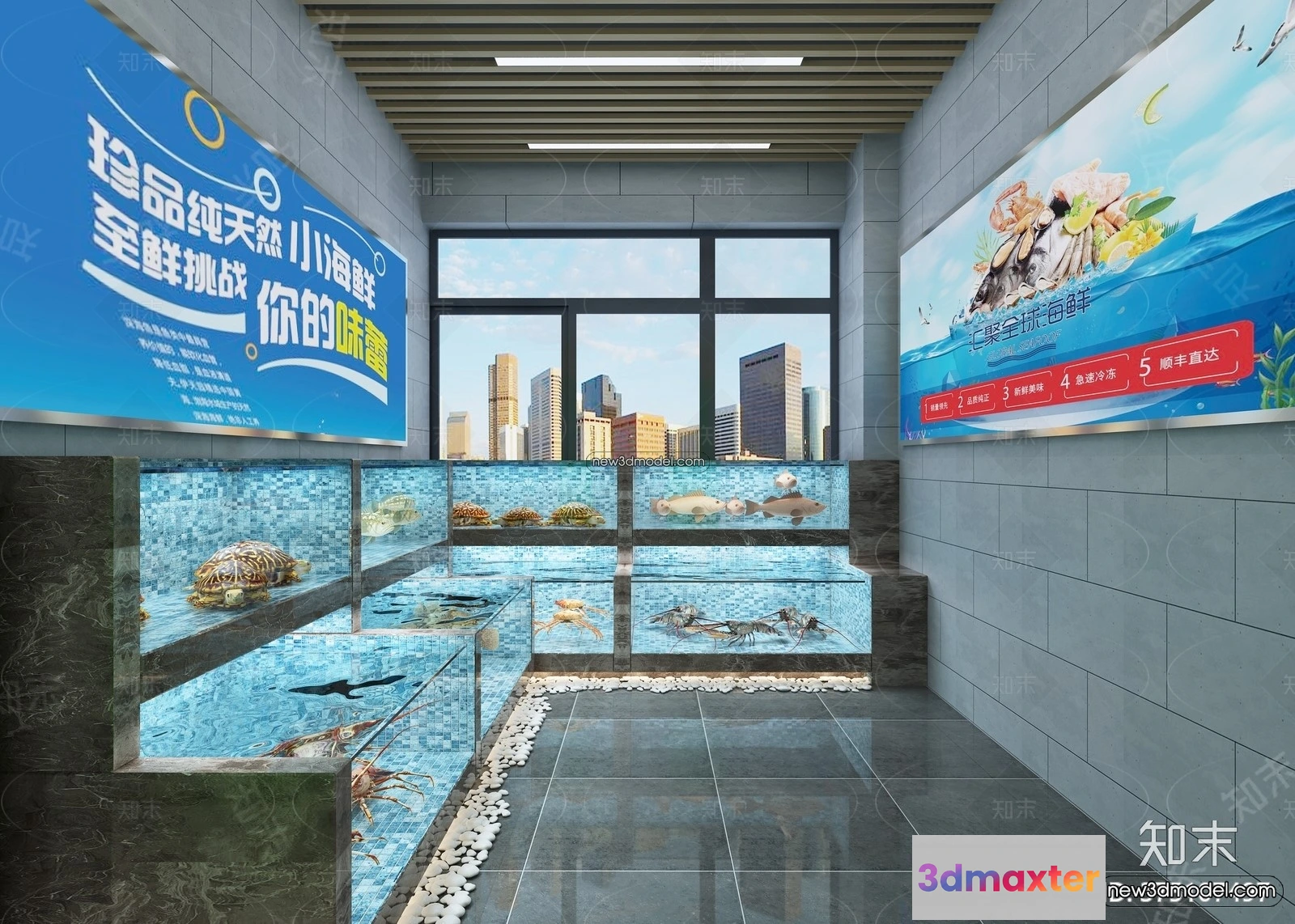 Seafood Restaurant 3D Scene – 3D Blocks – 007 – Restaurant 3D Model – VRAY