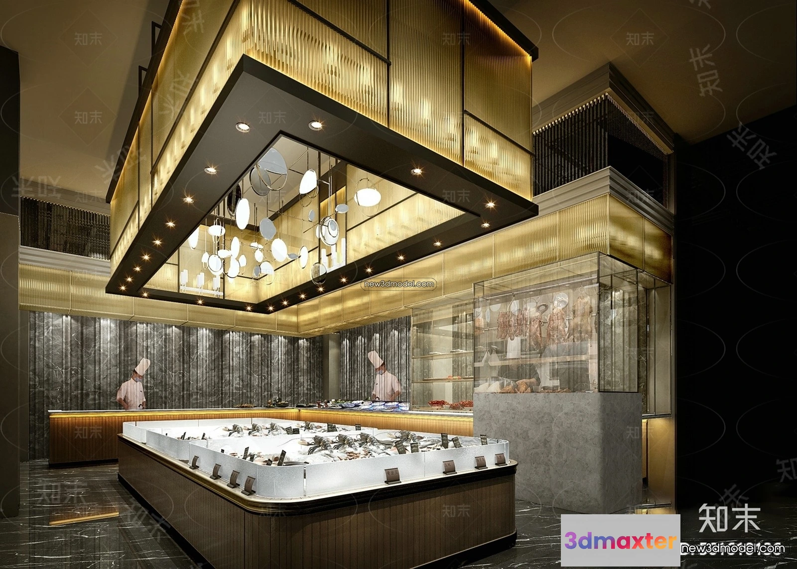 3D Models / 3D Scenes / Interior / Commercial Spaces / Seafood Restaurant 3D Scene – 3D Blocks – 023 3D Max