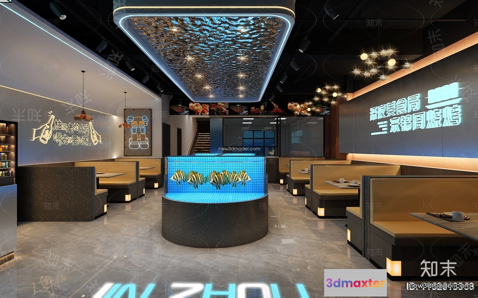 3D Models / 3D Scenes / Interior / Commercial Spaces / Seafood Restaurant 3D Scene – 3D Blocks – 031 3D Max
