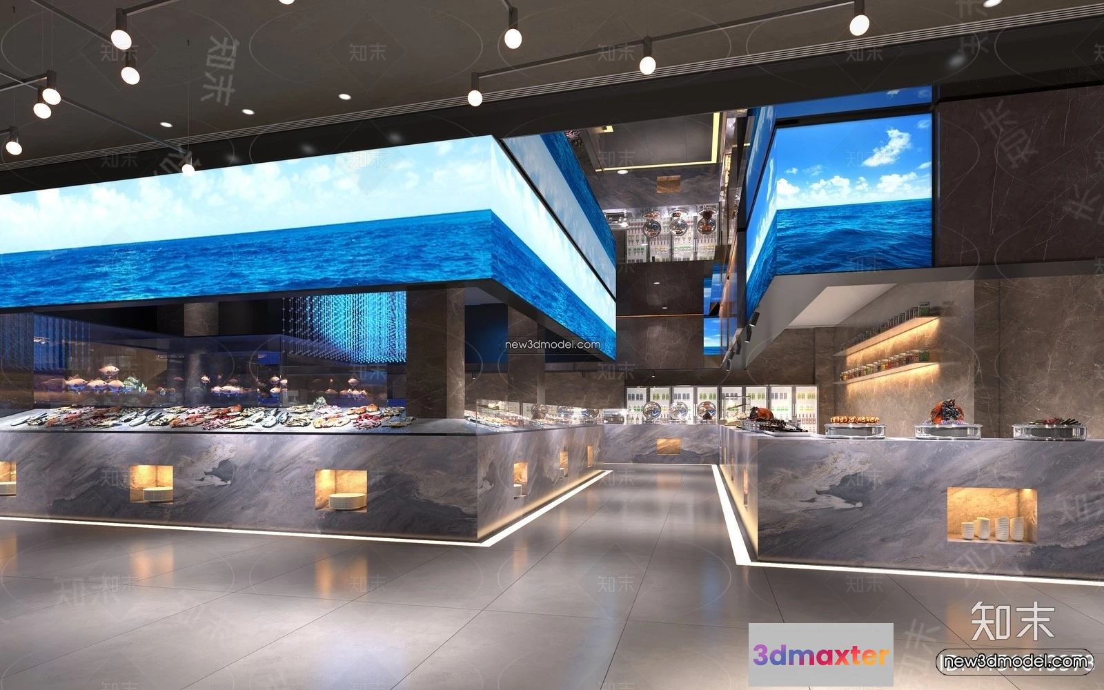 3D Models / 3D Scenes / Interior / Commercial Spaces / Seafood Restaurant 3D Scene – 3D Blocks – 032 3D Max