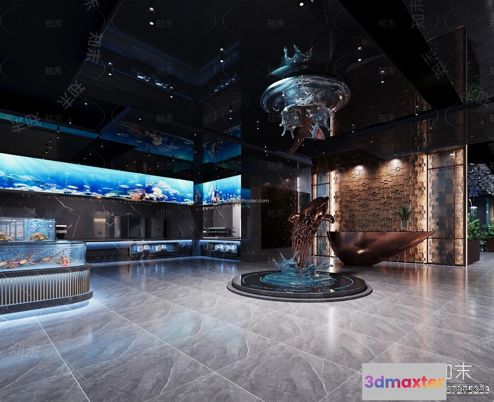 3D Models / 3D Scenes / Interior / Commercial Spaces / Seafood Restaurant 3D Scene – 3D Blocks – 035 3D Max