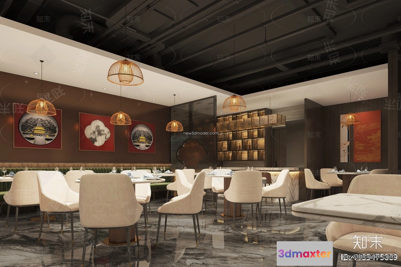3D Models / 3D Scenes / Interior / Commercial Spaces / Seafood Restaurant 3D Scene – 3D Blocks – 037 3D Max