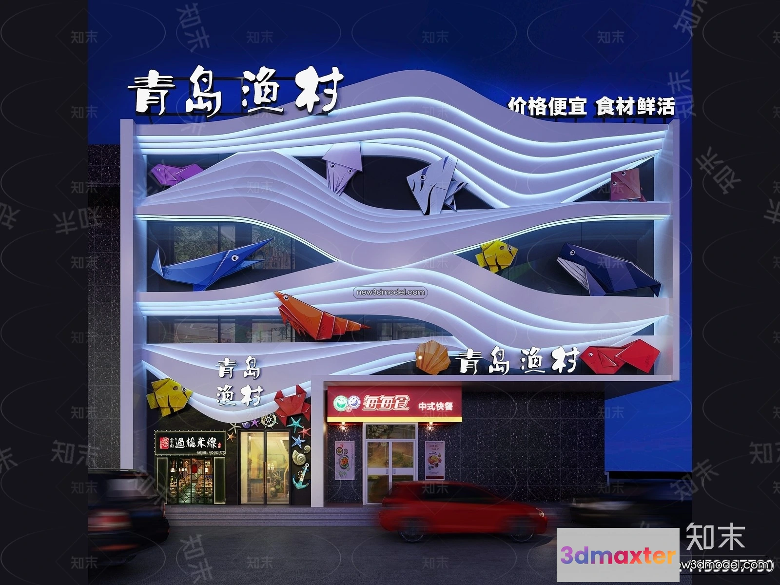 3D Models / 3D Scenes / Interior / Commercial Spaces / Seafood Restaurant 3D Scene – 3D Blocks – 052 3D Max