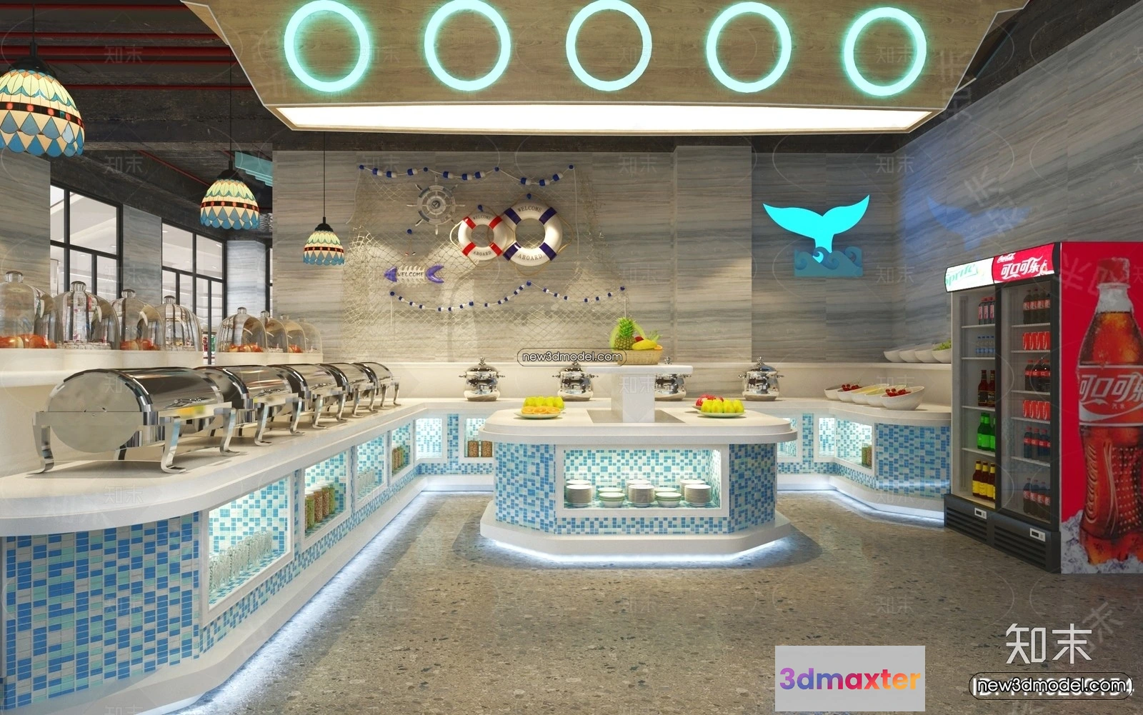 3D Models / 3D Scenes / Interior / Commercial Spaces / Seafood Restaurant 3D Scene – 3D Blocks – 054 3D Max