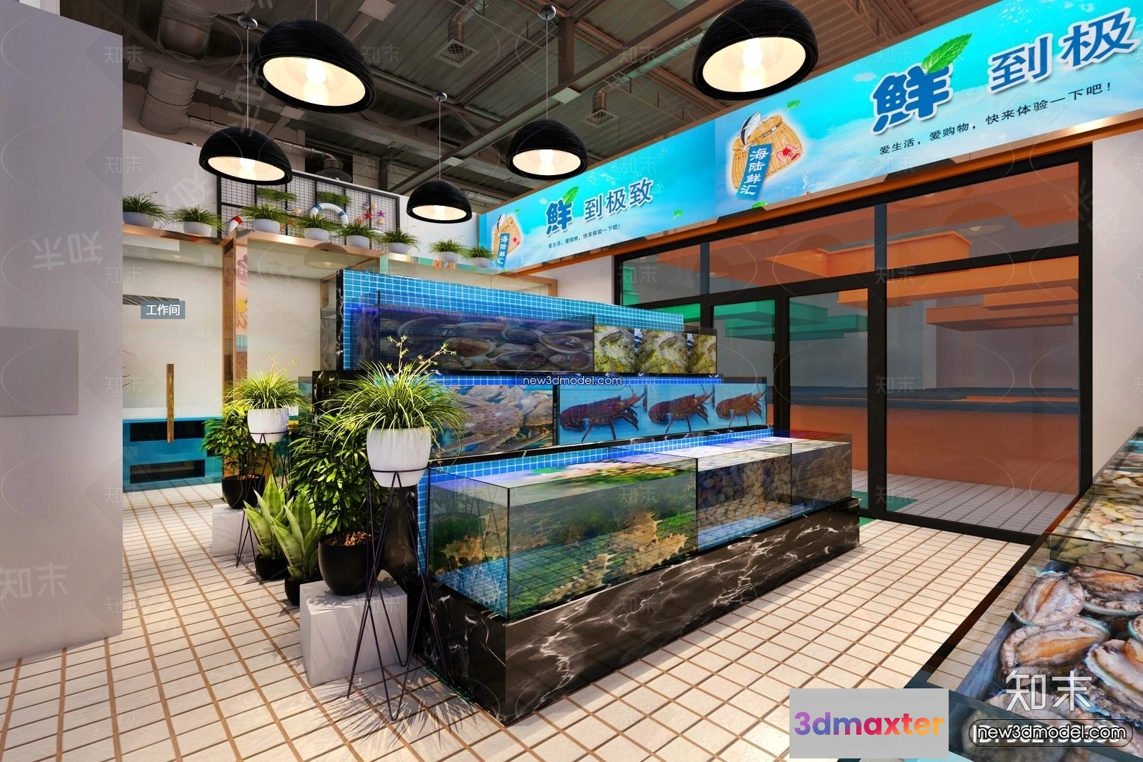 3D Models / 3D Scenes / Interior / Commercial Spaces / Seafood Restaurant 3D Scene – 3D Blocks – 055 3D Max