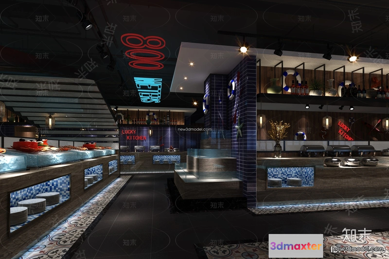 3D Models / 3D Scenes / Interior / Commercial Spaces / Seafood Restaurant 3D Scene – 3D Blocks – 057 3D Max