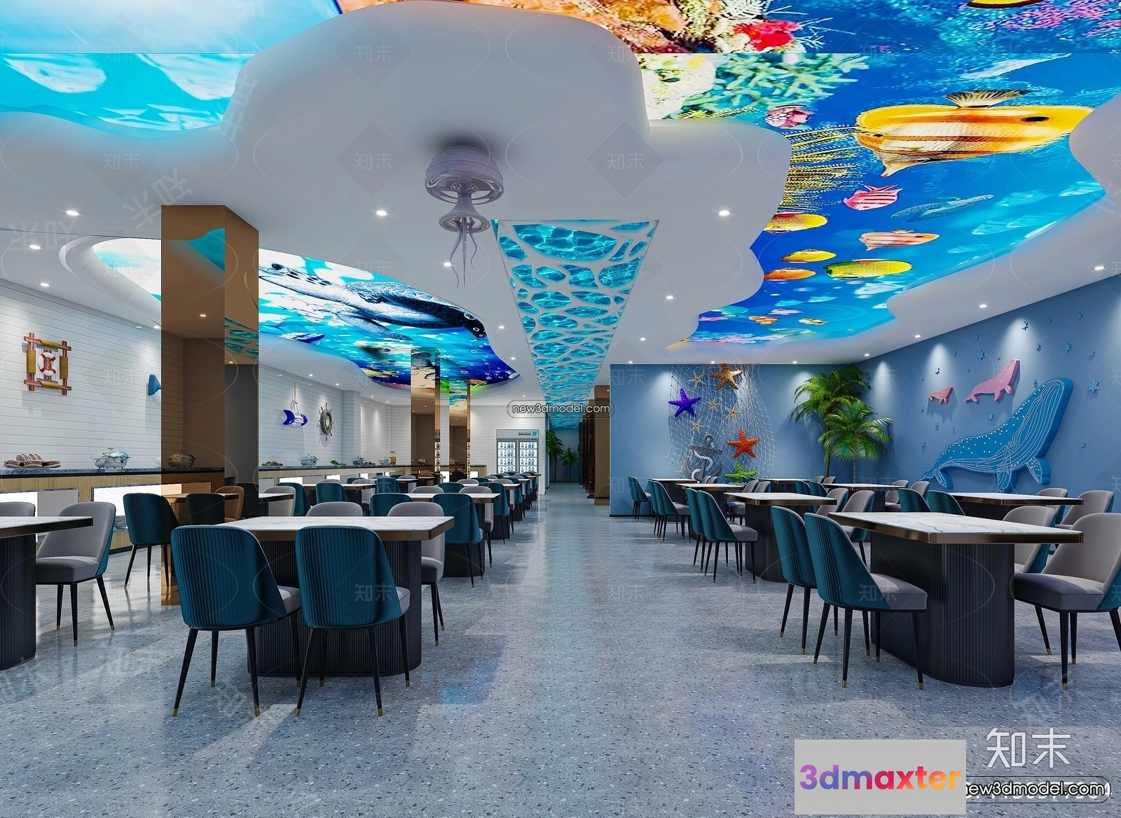 3D Models / 3D Scenes / Interior / Commercial Spaces / Seafood Restaurant 3D Scene – 3D Blocks – 058 3D Max