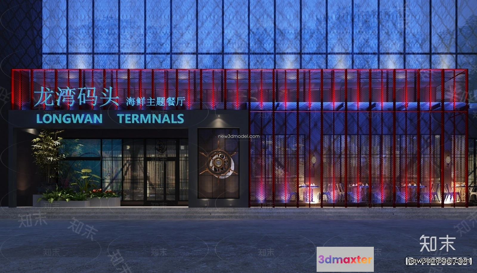 Seafood Restaurant 3D Scene – 3D Blocks – 061 – Restaurant 3D Model – VRAY