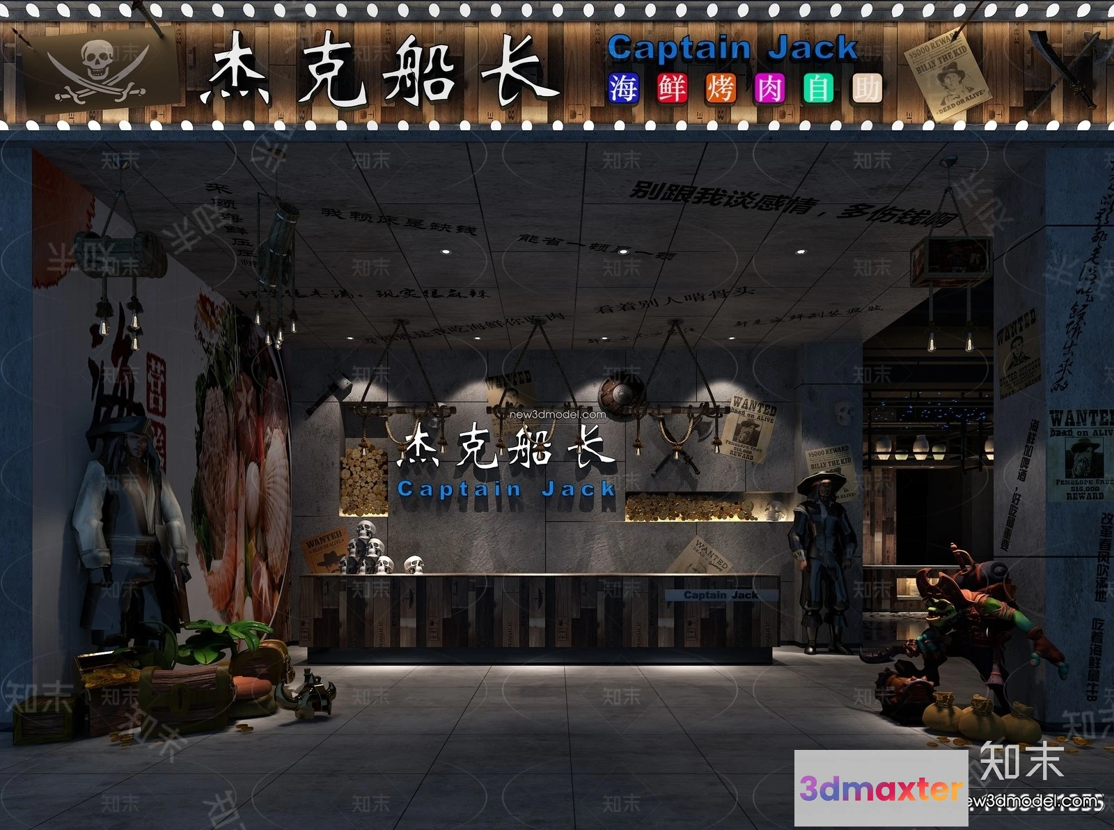 3D Models / 3D Scenes / Interior / Commercial Spaces / Seafood Restaurant 3D Scene – 3D Blocks – 071 3D Max