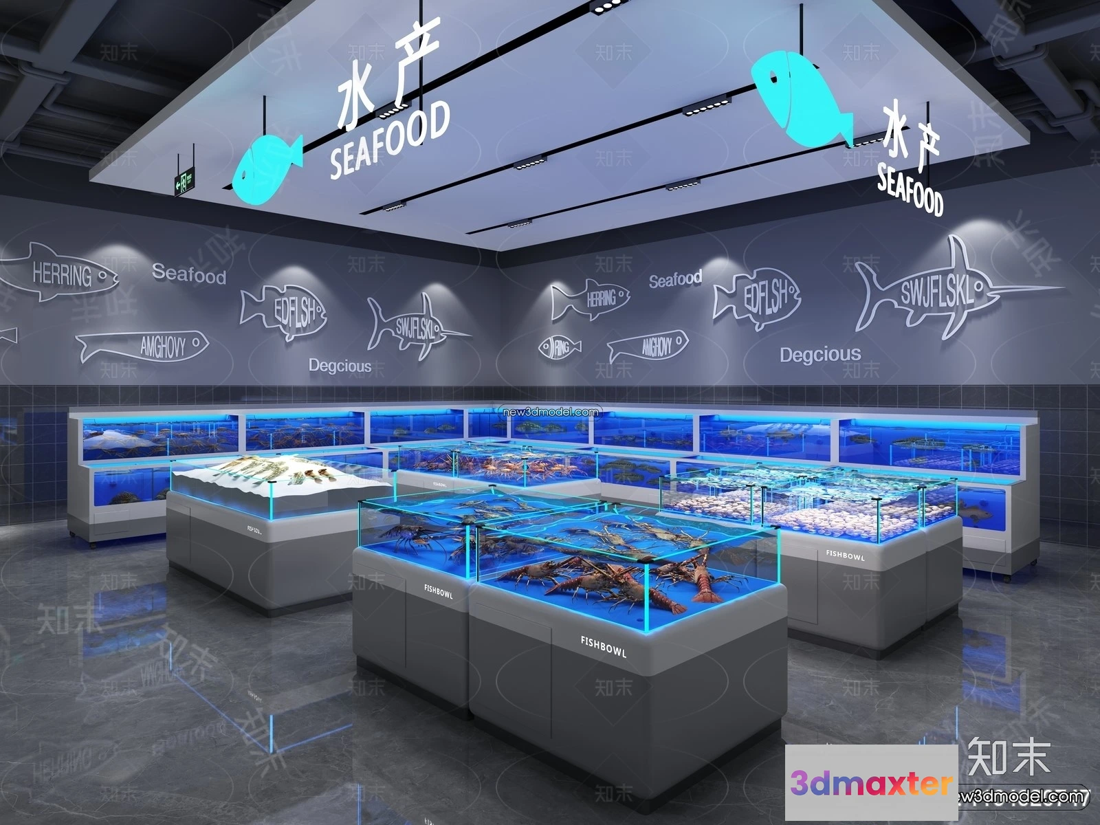 3D Models / 3D Scenes / Interior / Commercial Spaces / Seafood Restaurant 3D Scene – 3D Blocks – 076 3D Max