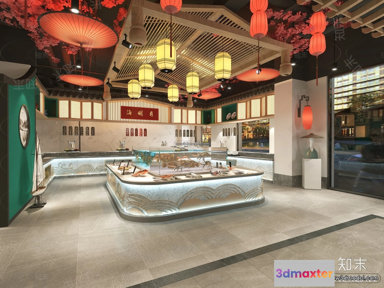 3D Models / 3D Scenes / Interior / Commercial Spaces / Seafood Restaurant 3D Scene – 3D Blocks – 077 3D Max