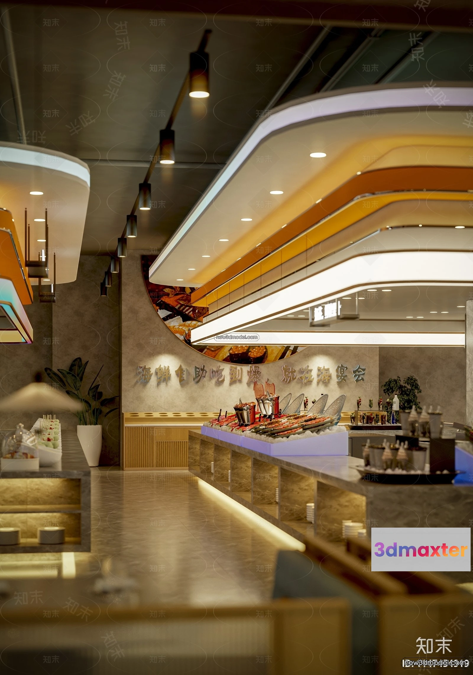 3D Models / 3D Scenes / Interior / Commercial Spaces / Seafood Restaurant 3D Scene – 3D Blocks – 080 3D Max