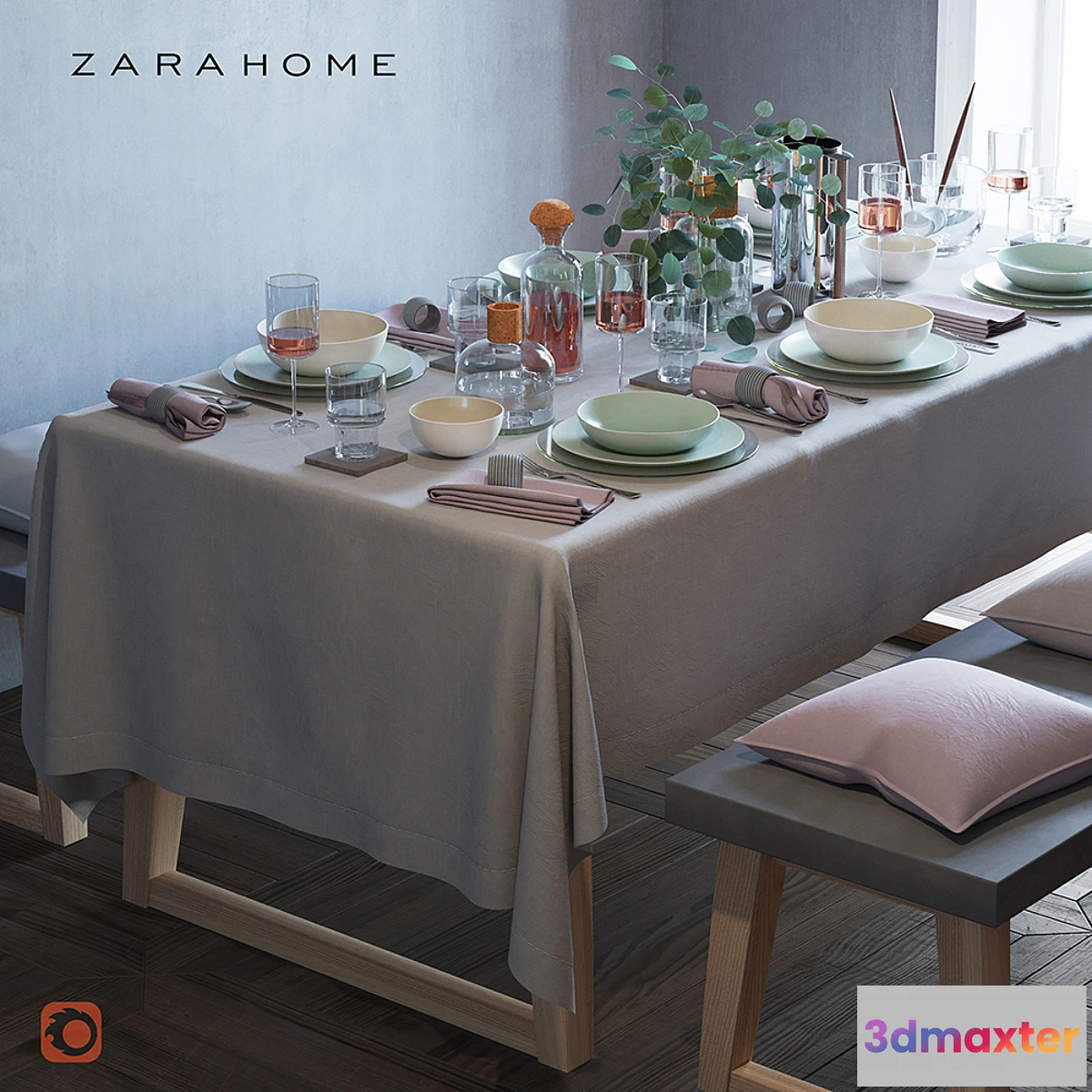 Table setting for 6 persons made according to the analogues of ZARA HOME. The set includes: