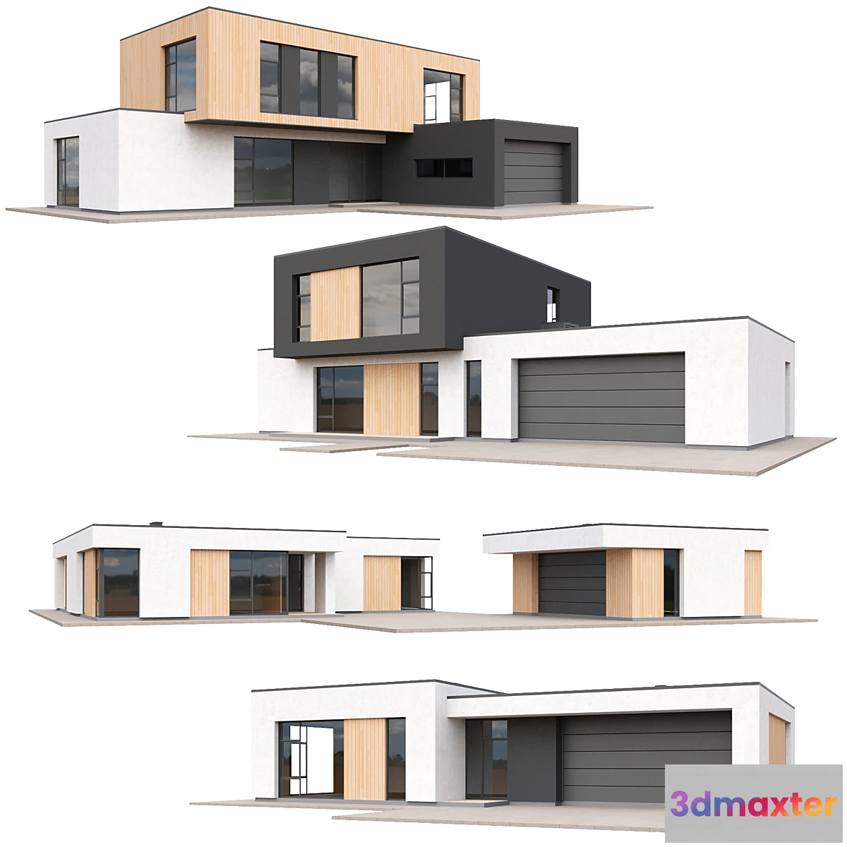 A set of 4 houses for the environment master plan or test scenes. The models are made as a shell without the volume of walls and without planning (see the image of the grid). I did not make chamfers at the corners for ease of editing.