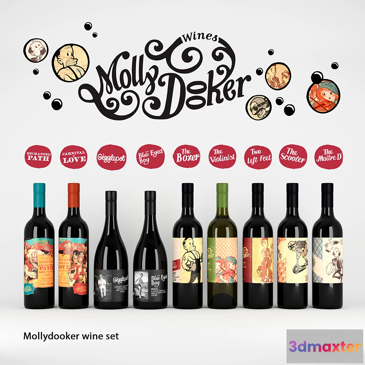 Set of 9 original bottles of Australian wine Mollydooker. The complete file for 3dsMax 2011 and library materials. Textures – hi-res http://www.mollydookerwines.com.au/
