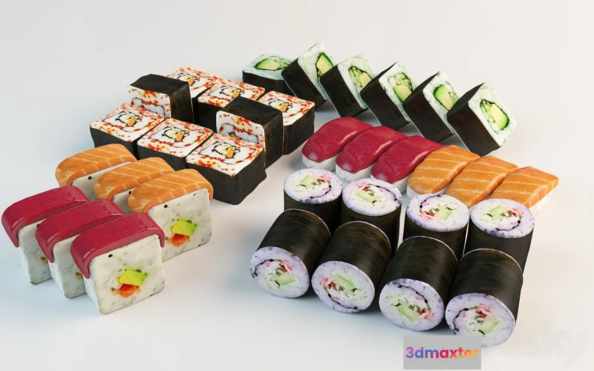 3D Models / Kitchen / Food and Drinks / Set Sushi rolls and sushi 3D Max