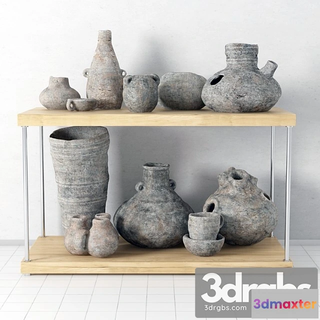 3D Models / Kitchen / Tableware / Shelf with pottery