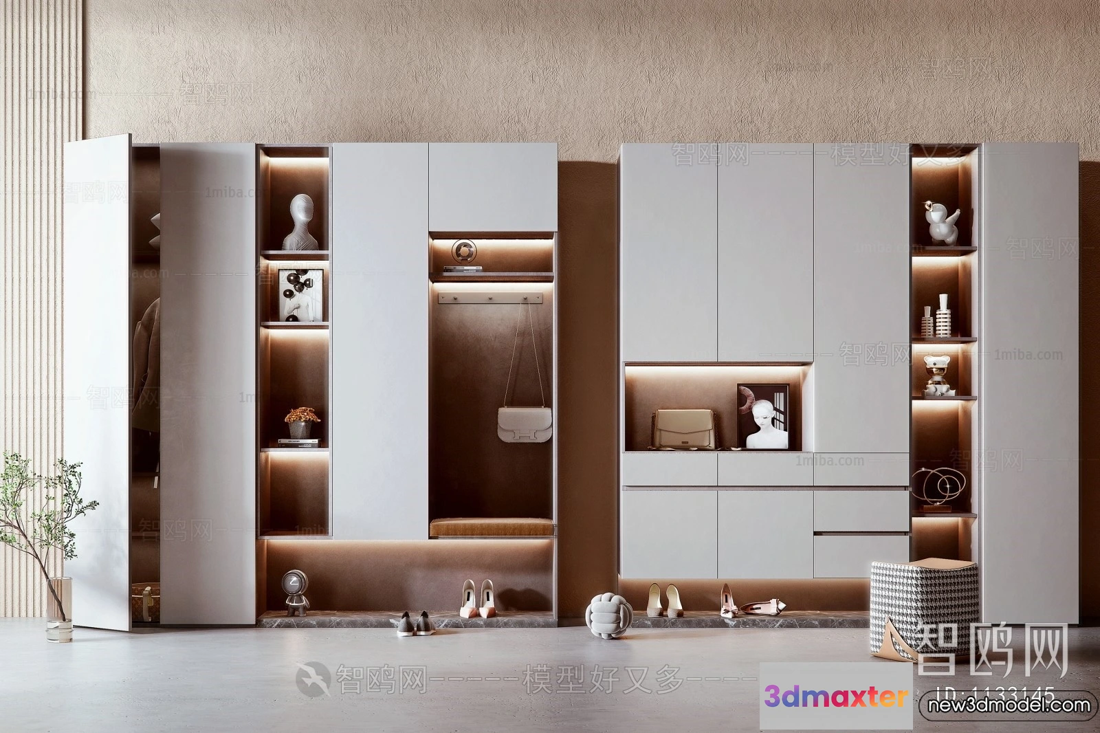 - Name: Shoe Cabinet and Racks – 3D Models for Interior – 023