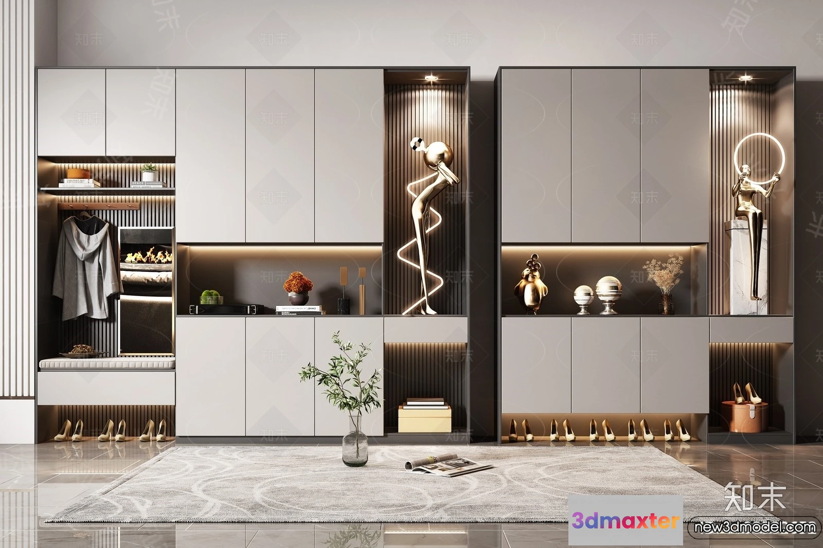 3D Models / 3D Scenes / Interior / Living Room / Shoe Cabinet and Racks – 3D Models for Interior – 085 3D Max