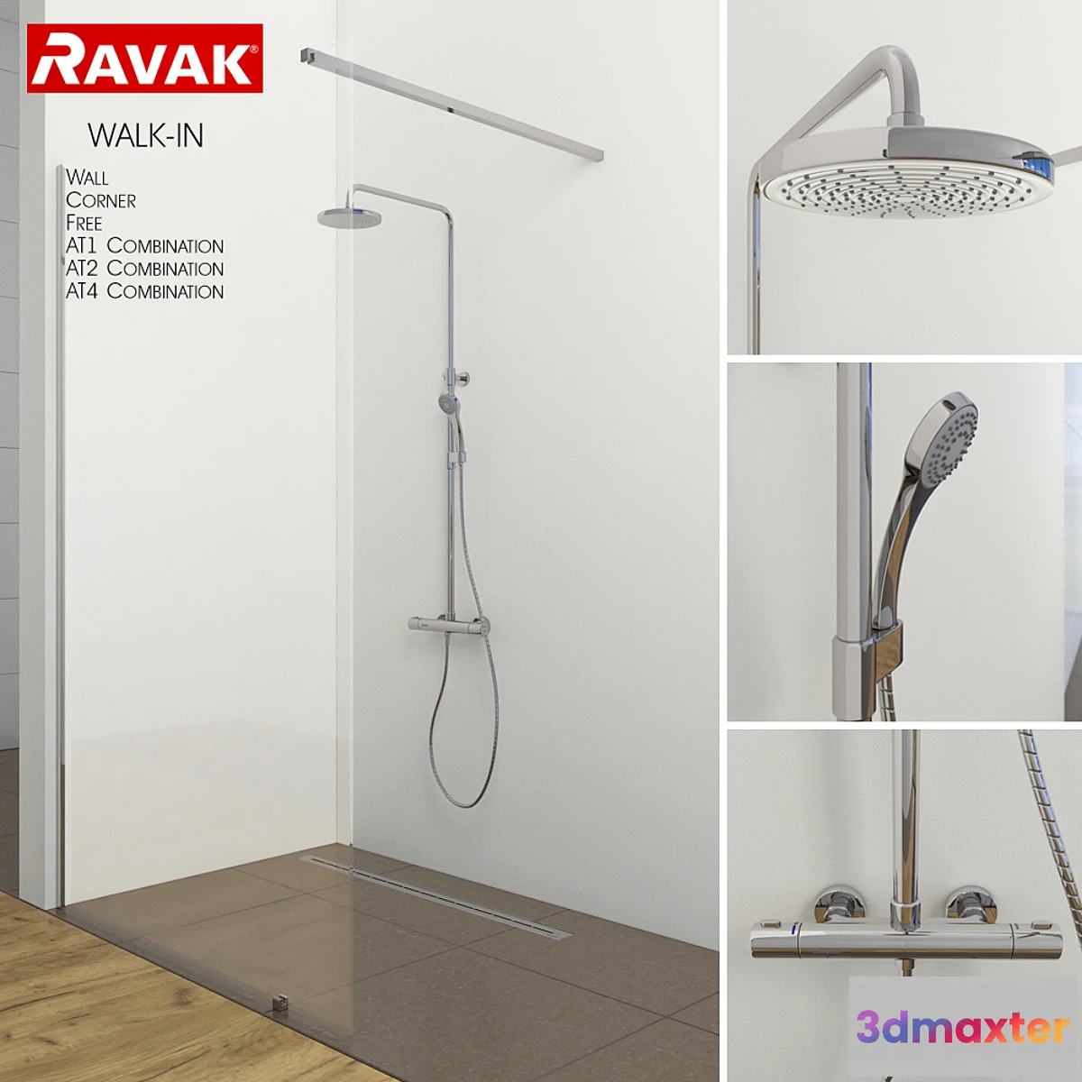 Shower RAVAK Walk-in. Models: -Wall -Corner -Free-AT1 Combination -AT2 Combination -AT4 Combination Manufacturer’s website: https://www.ravak.ru