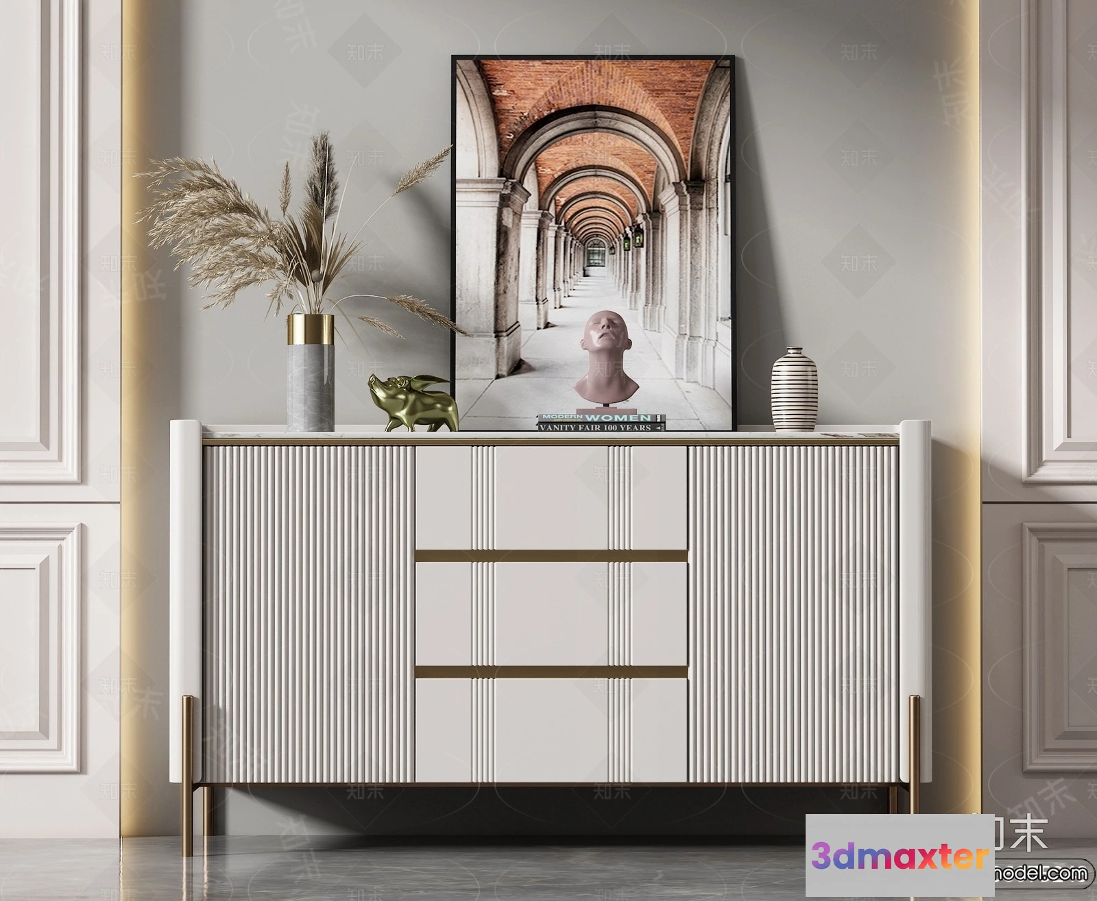- Name: Side Cabinet and Racks – 3D Models for Interior – 069