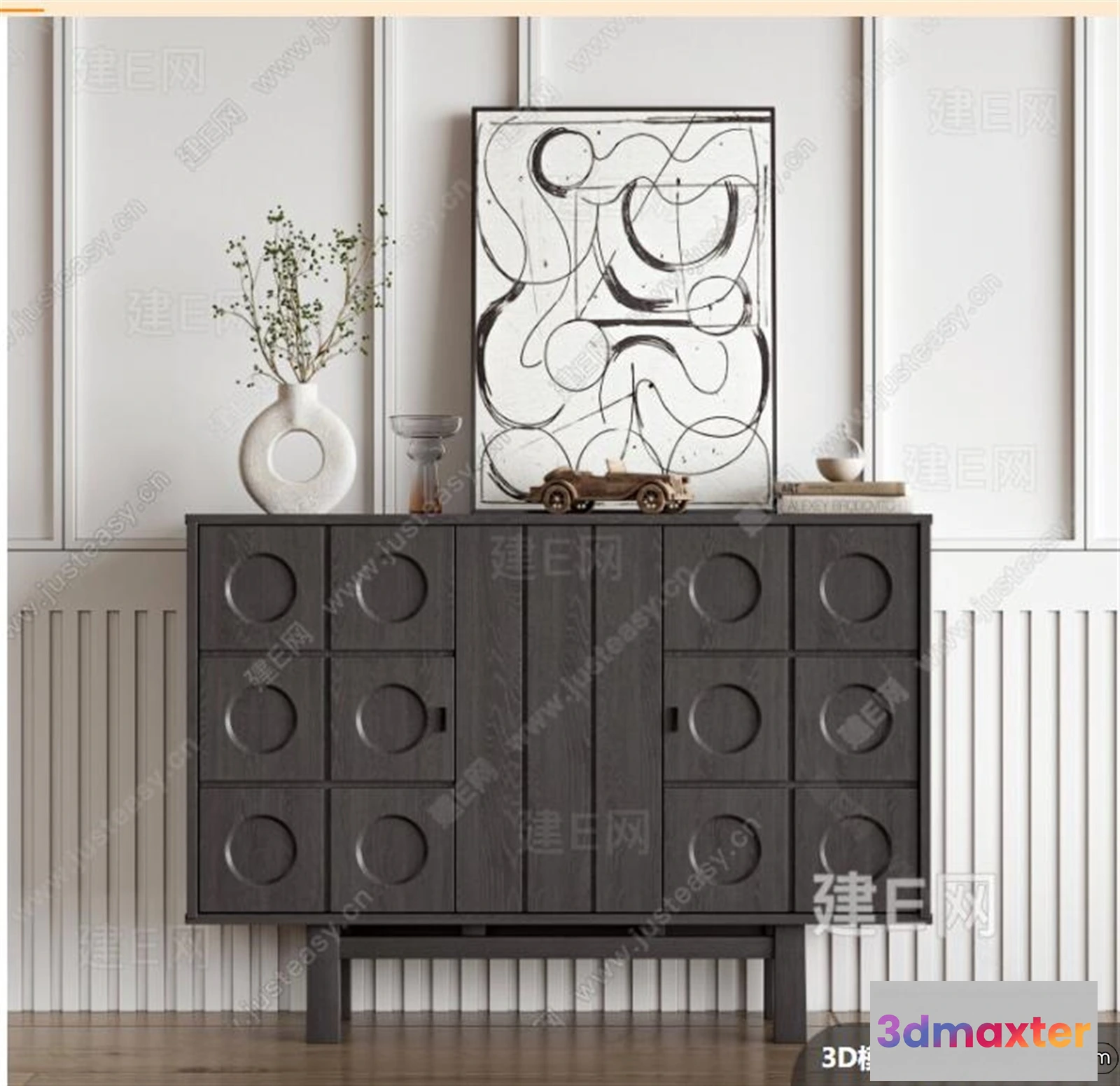 - Name: Side Cabinet and Racks – 3D Models for Interior – 073