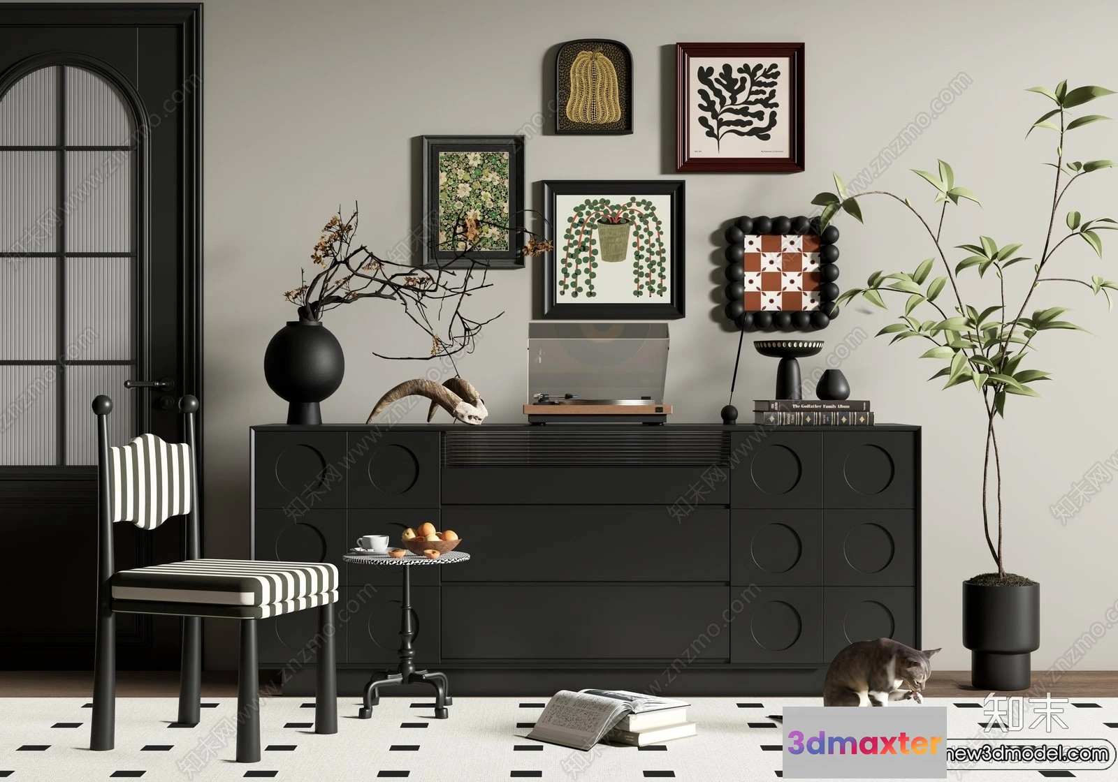 - Name: Side Cabinet and Racks – 3D Models for Interior – 121