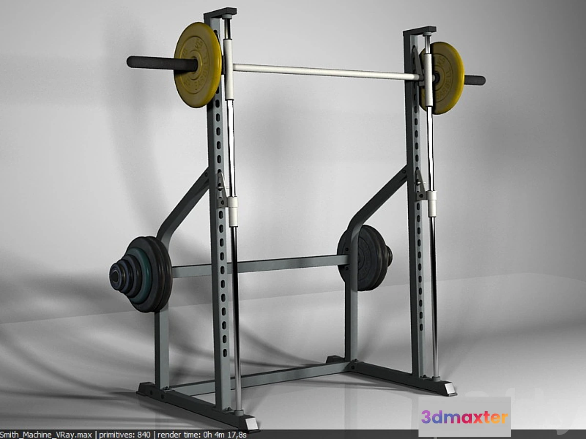 Simulator Machine Smith HouseFit HG-2010. Completed in 3ds Max 2009. Textures and materials included and configured for Scanline VRay Maxwell. Design completed in sufficient detail so that all the bolts and welds at the location. Not enough bench but it will be separately. But the disks included. 😎